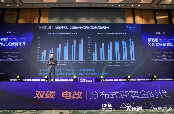 此外在系统适配性上,张映斌博士表示,目前已经有21家主流逆变器厂商210余款产品以及14家全球跟踪支架匹配全面适配天合210至尊系列超高功率组件。张映斌博士同时也在当日的高端对话环节中强调,适配性的完美解决,一方面确保组件可靠性能及超高功率组件价值优势的发挥;另外也提升了系统安全及效率,降低系统成本,促进整个高功率产业链高效协同。与会专家还就太阳能在分布式场景下快速发展的大背景,分析了分布式光伏的发展趋势和市场格局,深入讨论了未来影响分布式光伏开发、投资模式的因素、整县推进示范的实施要点及行业影响。