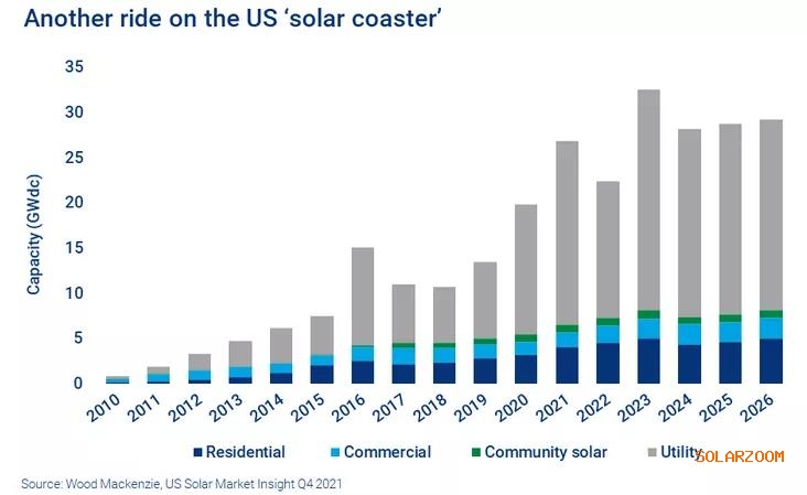 该公司表示,美国光伏市场在未来几年将经历跌宕起伏的发展过程。而美国光伏产业将会出现自2016年以来的最大波动,因为投资税收抵免将在未来几年到期。