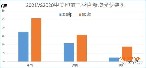 截止2021年三季度,全球主要光伏市场中国、美国、印度、澳大利亚、德国……均传来“历史记录”最好消息,预计中国、美国、印度将成为2021年度新增光伏装机全球前三。