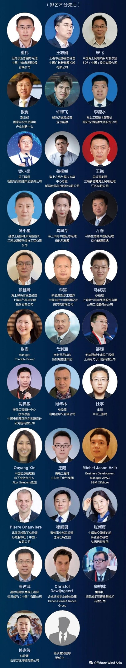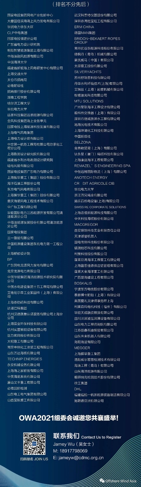 大会将重点探讨:1.“抢装潮”后海上风电发展所面临的机遇和挑战;2.深海漂浮式风电技术及国际项目合作机会;3.海上风电“新势力”——传统能源公司转型;4.新兴资本准入规则等业内人士共同关注的话题,力求为行业交流搭建高效精准的对接平台,共同推动海上风电的健康有序发展!