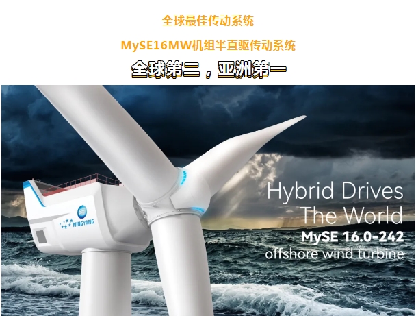 根据评选结果,明阳智能MySE4.0-166机型在“全球最佳陆上风电机组(4.6MW及以下)”榜单中位列全球第一,成为各项榜单中唯一一款位居榜首的中国风机;明阳智能MySE6.25-182机型在“全球最佳陆上风电机组(4.7MW及以上)榜单中位列全球第三、亚洲第二;明阳智能海上MySE16MW风电机组半直驱传动系统及MySE16-118A1风机叶片分别入选“全球最佳传动系统”和“全球最佳叶片”,均位列全球第二、亚洲第一,这也使得明阳成为入选这两项榜单的唯一一家中国整机商。