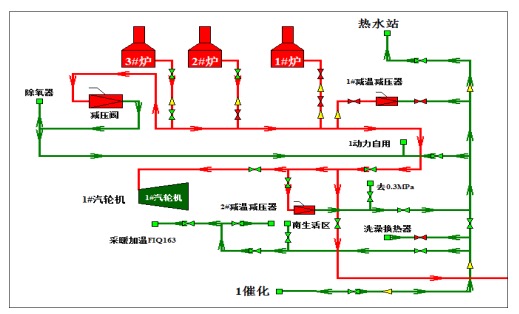 (2)工程化方法:将上述数学模型作实时应用,对蒸汽动力系统和蒸汽管网系统实际工况作出评估,提出可行的优化措施,达到节能降耗的效果;