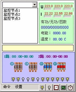 子站完成对该区域路灯的开关灯控制及电压、电流、功率、功率因数、用电量等参数的检测,并接收主站的控制命令, 回送有关参数;监控主站则完成对子站发送控制、检测命令,处理检测数据及各种系统管理功能。