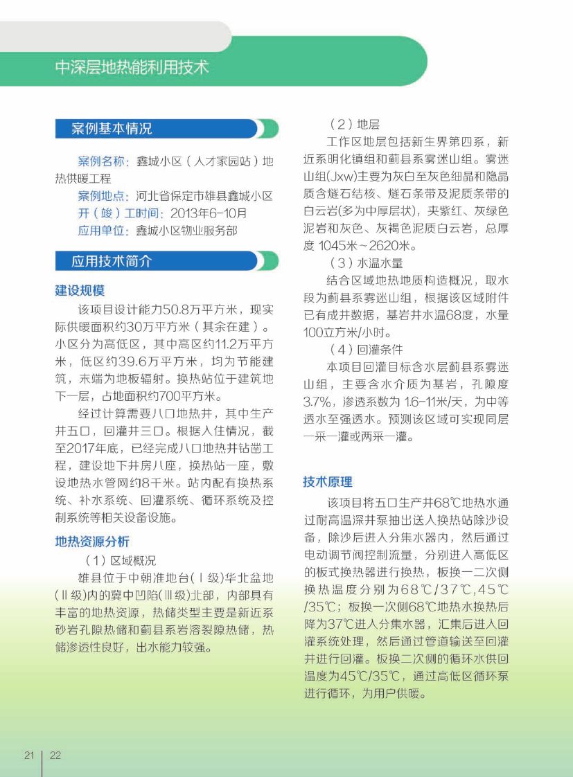 中深层地热能利用技术——应用案例:鑫城小区(人才家园站)地热供暖工程