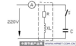 ⑴理论验证:日光灯电路是我们家庭用中较广泛的感性负载。图2中假设R=100Ω,XL=173Ω,C=11.6uF,通过开关S接通和断开可以并入或移出移项电容C,通过计算我们可以得出:当开关S断开时,电流表显示1.1A,功率因数cosφ=0.5,有功功率P=121W。当开关S接通时,电流表显示为0.57A,功率因数cosφ=0.96,有功功率P=121W。这与我们前面所讲的电度表转矩的产生相吻合,即不管是否并入移项电容,消耗的有功功率是不变的,电度表所产生的转矩也是一样的。